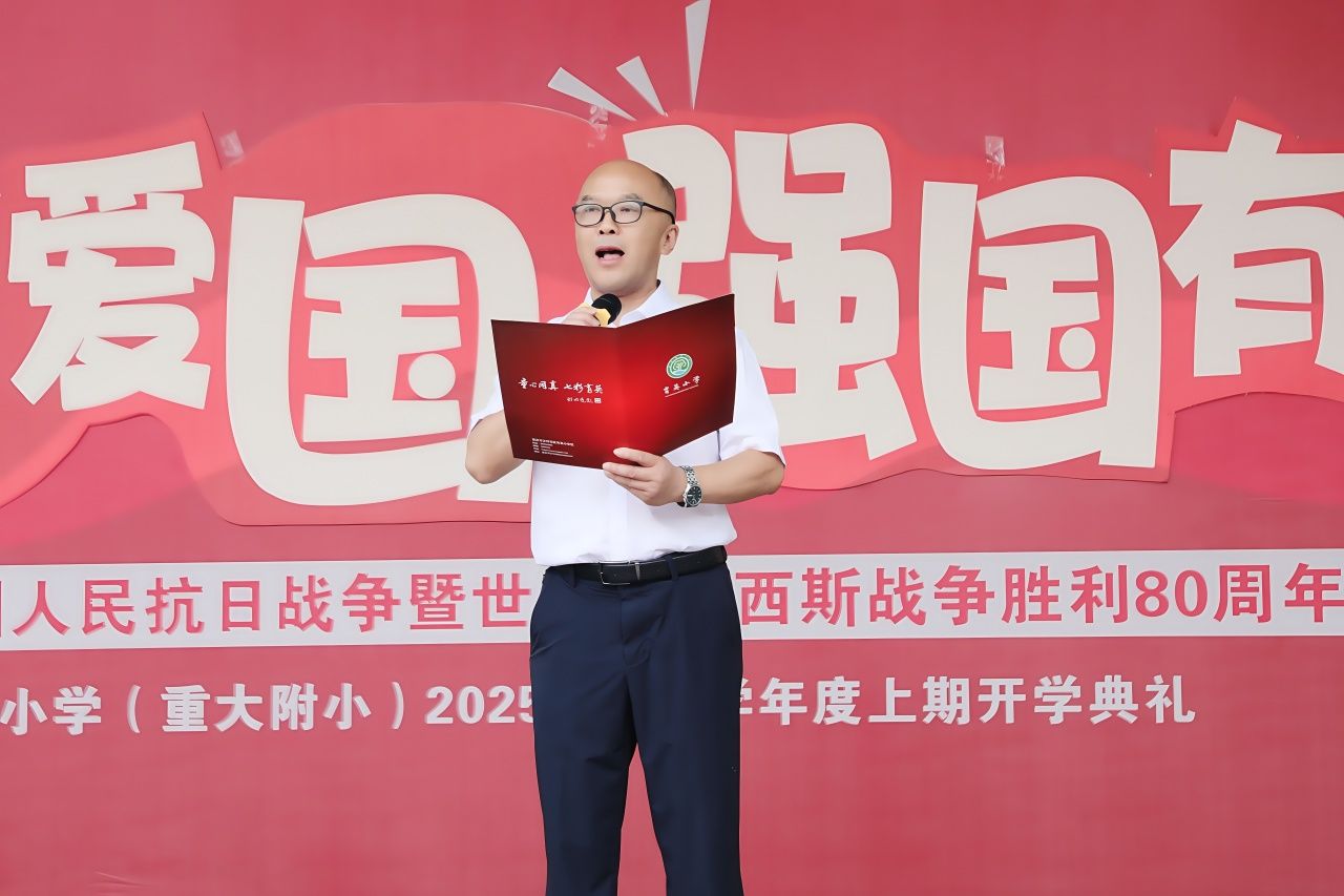 开学典礼上,学校以“爱党爱国 强国有我”为核心,纪念中国人民抗日战争暨世界反法西斯战争胜利80周年。新学期的成长需要方向,传承红色精神更需要指引。