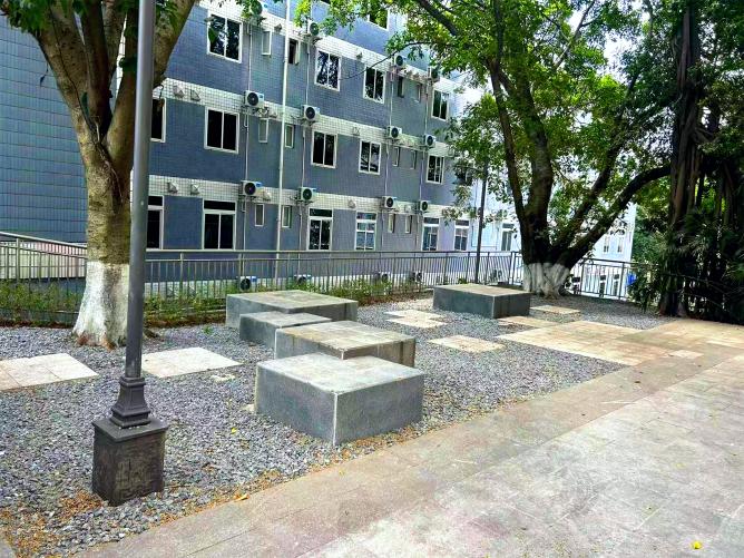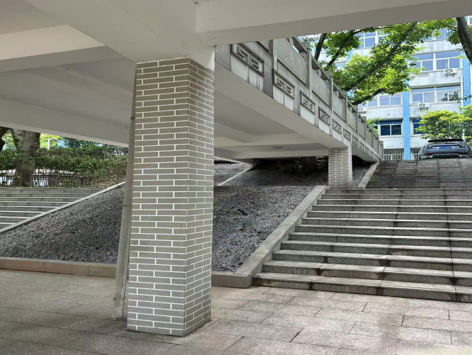 在一舍、三舍等区域铺设透水砖,增强地面排水性能;四教天桥下、二教至一舍斜坡、图书馆旁等区域铺设水洗碎石,打造整洁美观的步行、休闲空间;对宣传栏、废弃仓库等设施进行翻新,提升校园设施安全性和实用性。
