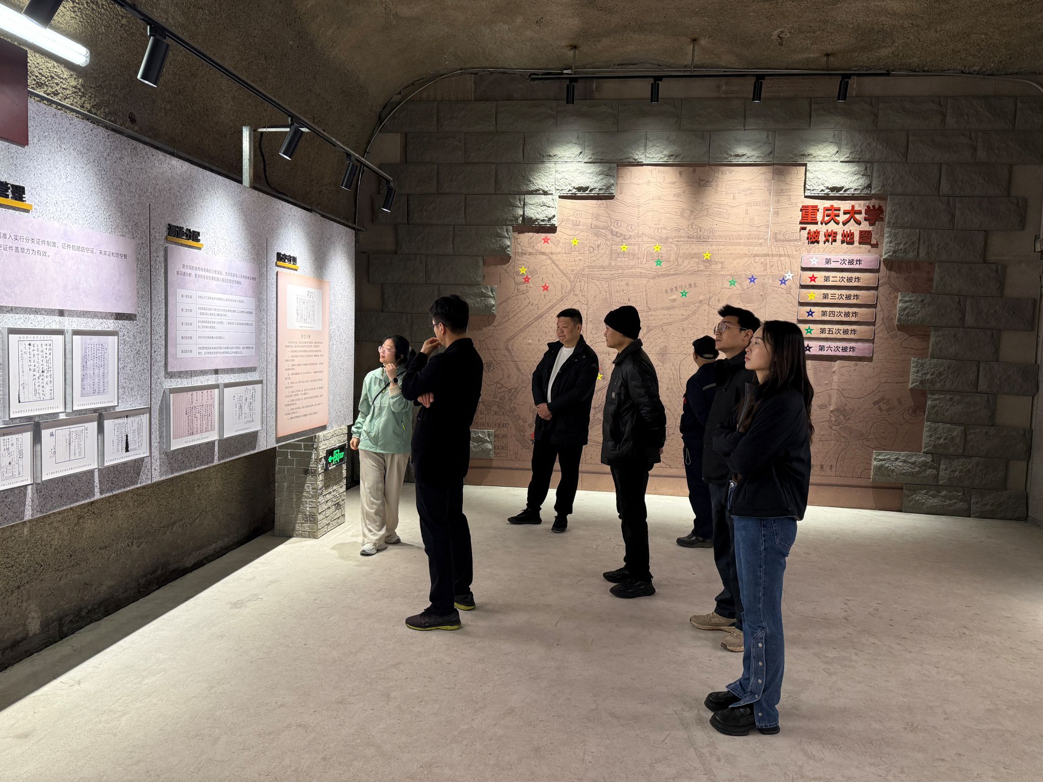 在讲解员引领下,全体人员有序参观防空洞。昏暗灯光、斑驳岩壁与珍贵史料共同构成历史场景,通过系统聆听防空洞修建背景、抗战时期重大师生坚持教学科研及人民防空工程历史变迁等讲解,深刻体悟到前辈学人在民族危亡之际展现的不屈不挠、教育报国的崇高精神。