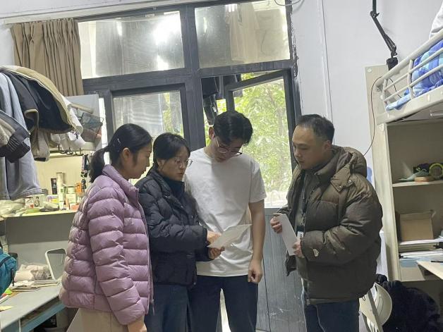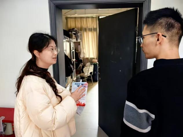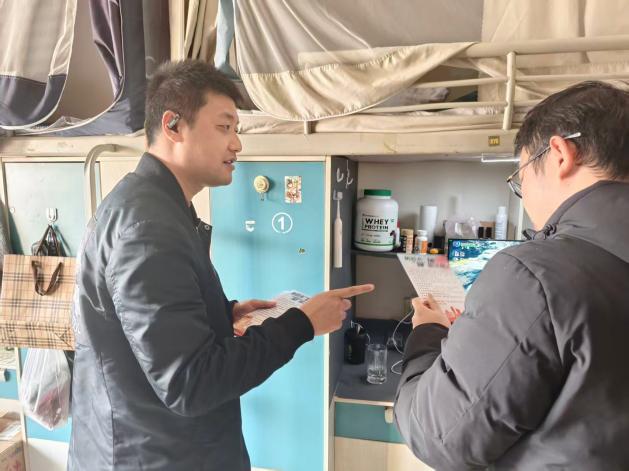 (联合保卫处开展学生宿舍违章电器检查,向学生们发放温馨提示)