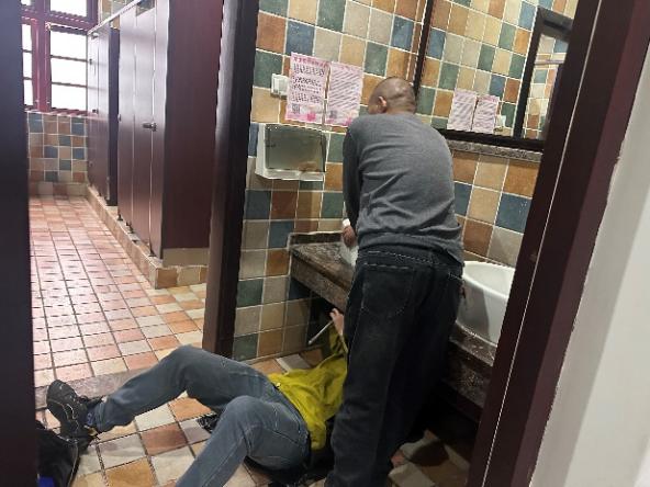 (公共卫生间铺设防滑地垫)