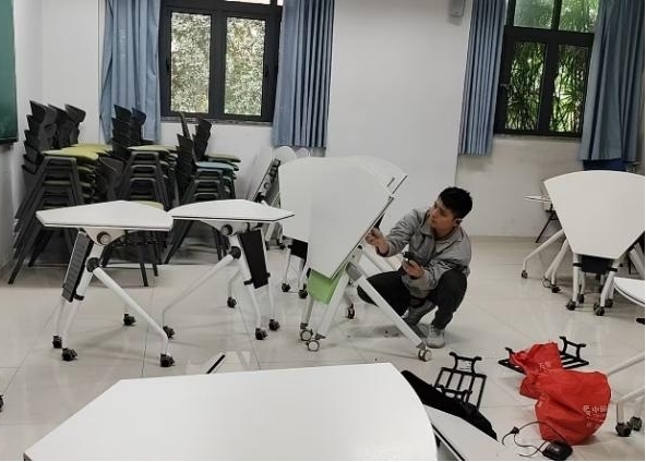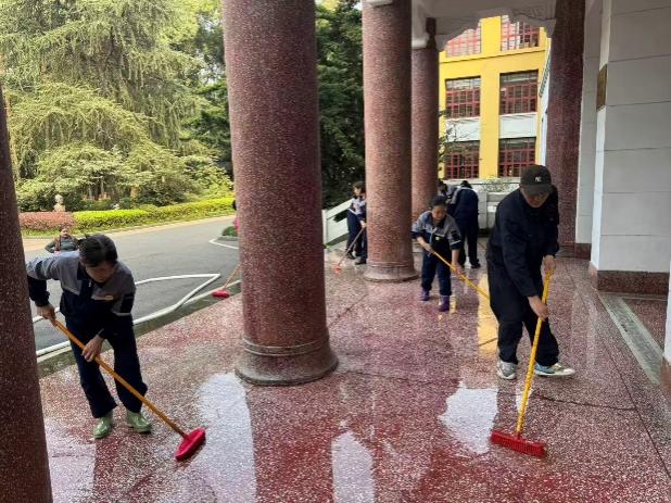 完成主教学楼公房杂物清理与设施巡查,保障重点活动场地布置与设备运行,完成教室黑板更换及70间卫生间深度清洁。
