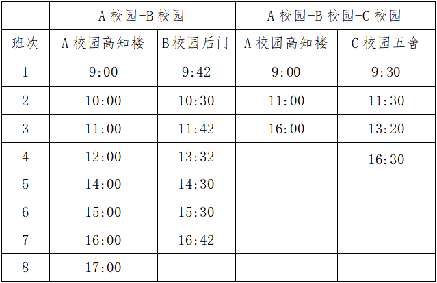 根据2026年学校寒假时间,拟定沙坪坝校区穿梭巴士运行班次(见时刻表),新学期运行班次另行通知。
